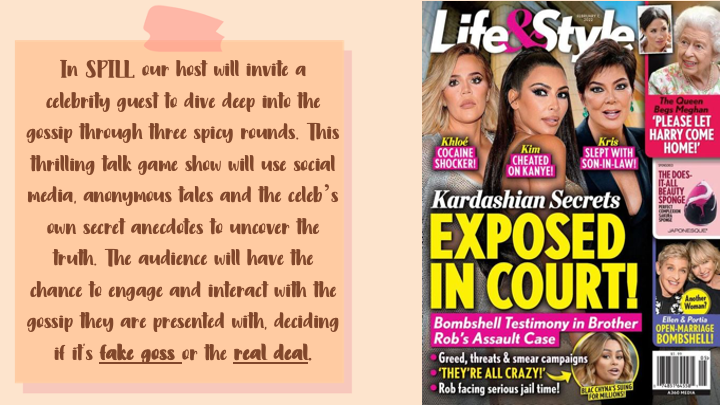 Pitch DeckSydney KApr 2, 20231 min readUpdated: May 20, 2024I created this pitch deck for the CEO and Head of Development of the unscripted production company, Back Roads Entertainment, for a celebrity gossip game show I invented.