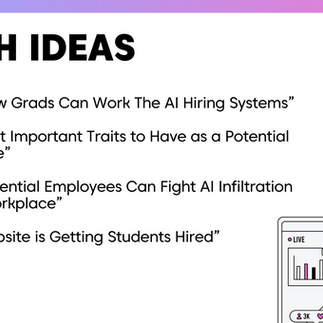For my PR Capstone at the University of Texas, we were tasked with creating a PR strategy for a startup company called, "The Real Me," who help early career individuals get hired and grow their careers based on their potential. We collaborated with different departments in our student agency, Web Media, including the strategy, media, creative and account services departments.